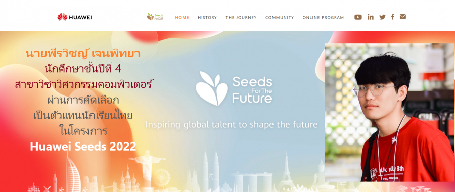 นักศึกษาสาขาวิชาวิศวกรรมคอมพิวเตอร์ ชั้นปีที่ 4 นายพีรวิชญ์ เจนพิทยา ผ่านการคัดเลือกเป็นตัวแทนนักเรียนไทยในโครงการ Huawei Seeds 2022